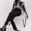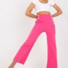 Damskie spodnie materiałowe z gumką w pasie. Spodnie z wysokim stanem, po bokach kieszenie wsuwane.