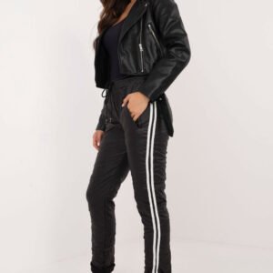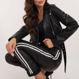 Damskie spodnie z ekoskóry to doskonały wybór dla miłośniczek casualowego stylu, idealne na co dzień oraz do pracy. Wykonane z wysokiej jakości mieszanki wiskozy, poliestru i elastanu, zapewniają wygodę oraz elastyczność, a ich gładki wzór nadaje im nowoczesny charakter. Wysoki stan doskonale podkreśla talię, a zwężane nogawki optycznie wydłużają sylwetkę. Spodnie wyposażone są w praktyczne boczne kieszenie wsuwane, które są idealne do przechowywania drobiazgów. Dodatkowo, wiązanie w pasie pozwala na indywidualne dopasowanie, a stylowe lampasy po bokach nogawek nadają całości sportowego, a zarazem eleganckiego wyglądu. To uniwersalny element garderoby, który można łączyć z różnymi topami i dodatkami, tworząc niepowtarzalne stylizacje.