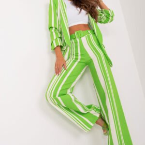 Spodnie materiałowe zapinane na zamek i guzik to idealny wybór dla kobiet ceniących sobie elegancję i komfort. Dzięki swojemu klasycznemu krojowi i wykończeniu, są wszechstronnym elementem garderoby, odpowiednim na różne okazje. Elegancki krój sprawia, że spodnie te są doskonałe zarówno do codziennych stylizacji, jak i na bardziej formalne okazje. Szerokie nogawki dodają szyku i klasy, jednocześnie zapewniając wygodę. Idealne na co dzień, pozwalając na stworzenie stylizacji, która jest zarówno komfortowa, jak i elegancka. Świetny wybór na spotkania biznesowe, lunche czy kolacje, gdzie wymagany jest bardziej formalny strój. Dzięki swojemu eleganckiemu wyglądowi i modnemu wzorowi w paski, spodnie te doskonale sprawdzą się również na różnego rodzaju imprezach. Spodnie wykonane są z wysokiej jakości poliestru, który jest trwały i odporny na zagniecenia. Materiał w paski dodaje im nowoczesnego wyglądu, wyróżniając je na tle innych spodni. Wysoki stan spodni podkreśla talię i zapewnia komfort noszenia, nadając sylwetce elegancki wygląd. Szerokie nogawki to modny wybór, który zapewnia swobodę ruchów i elegancki wygląd. Taki fason jest nie tylko wygodny, ale także dodaje stylizacji wyrafinowania. Zapinane na zamek i guzik: Klasyczne zapięcie zapewnia wygodę i bezpieczeństwo. Pasek zapinany dodaje stylu i pozwala na idealne dopasowanie spodni do sylwetki. Kieszenie wsuwane praktyczne i dyskretne, dodają funkcjonalności bez utraty elegancji. Spodnie te są doskonałym wyborem dla kobiet, które cenią sobie połączenie elegancji, wygody i nowoczesnego stylu.