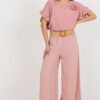 Długie spodnie materiałowe szwedy z wysokim stanem oraz ozdobnymi marszczeniami. Propozycja na wiele okazji.