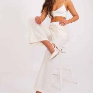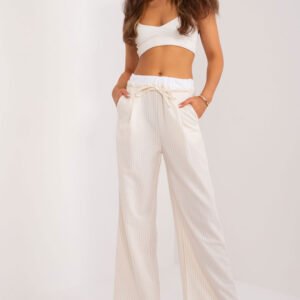 Te eleganckie spodnie palazzo są doskonałym wyborem na różnorodne okazje, od codziennych sytuacji po wizytowe wydarzenia czy wieczorne imprezy. Ich stylowy design i wysokiej jakości materiał sprawiają, że stanowią niezawodną bazę dla wielu różnych stylizacji. Wykonane głównie z poliestru, spodnie te są wyjątkowo trwałe i odporne na zagniecenia, co sprawia, że nadają się idealnie na codzienne noszenie oraz na sezon wiosna/lato. Materiał w drobne paski dodaje im lekkości i subtelności, co czyni je odpowiednimi na różne okazje. Ich wysoki stan podkreśla talię i dodaje elegancji całej sylwetce. Szerokie nogawki w stylu palazzo nadają im luksusowego charakteru i zapewniają swobodę ruchów, co czyni je wygodnym wyborem na długie dni w pracy czy wieczorne wyjścia. Na przodzie spodni znajdują się ozdobne zaszewki, które dodają im oryginalności i wyjątkowego charakteru. Dodatkowo, spodnie posiadają wsuwane kieszenie boczne, co jest praktycznym uzupełnieniem całej konstrukcji. Spodnie palazzo wiązane w pasie pozwalają na regulację dopasowania, co sprawia, że idealnie układają się na każdej sylwetce. Niech te spodnie staną się nieodłącznym elementem Twojej garderoby, dodając szyku i elegancji każdej stylizacji, niezależnie od okazji.