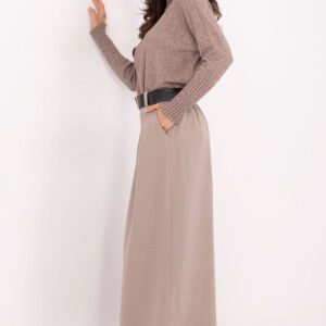 Eleganckie i komfortowe damskie spodnie palazzo wykonane z wysokiej jakości mieszanki wiskozy i poliestru, które łączą elegancję z wygodą noszenia na co dzień i do pracy. Gładki materiał nadaje spodniom klasyczny, wyrafinowany charakter, a długie, szerokie nogawki optycznie wydłużają sylwetkę, tworząc lekki i kobiecy look. Model posiada wysoki stan z wszytą gumą dla idealnego dopasowania oraz zakładki na przodzie, które subtelnie podkreślają talię. Dodatkowym atutem jest zapinany pasek, pozwalający dopasować spodnie do figury i dodać stylizacji wyrafinowanego akcentu. To propozycja uniwersalna, która świetnie sprawdzi się zarówno w codziennych, casualowych zestawach, jak i w wizytowych, eleganckich stylizacjach do pracy lub na specjalne okazje.