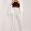 Welurowe spodnie dzwony to stylowa propozycja dla kobiet, które lubią połączenie elegancji i wyrazistego charakteru. Miękki, przyjemny w dotyku welur pięknie układa się na sylwetce, a gładki dominujący wzór nadaje całości szykownego minimalizmu. Przód pasa został ozdobiony subtelnymi dżetami, które dodają spodniom wyjątkowego, imprezowego akcentu. Model posiada średni (regularny) stan, który zapewnia komfort noszenia i korzystnie podkreśla talię. Szerokie nogawki typu dzwony optycznie wydłużają nogi i wpisują się w eleganckie, a zarazem nieco retro inspiracje. Spodnie nie mają zapięcia, co zwiększa wygodę użytkowania. Wykonane z mieszanki poliestru i wiskozy, są trwałe, miękkie i prezentują się wyjątkowo efektownie zarówno w ruchu, jak i w świetle imprezowych reflektorów. To idealny wybór na wizytowe okazje, eleganckie wyjścia oraz imprezy, kiedy chcesz wyglądać olśniewająco i stylowo.