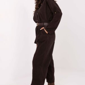 Wygodne i stylowe spodnie damskie sztruksowe o luźnym kroju, idealne na co dzień. Wykonane z miękkiego poliestru, zapewniają komfort noszenia i swobodę ruchów. Model posiada wysoki stan z wszytą gumą w pasie, dzięki czemu świetnie dopasowuje się do sylwetki i podkreśla talię. Spodnie mają boczne kieszenie wsuwane oraz otwarte kieszenie z tyłu, co dodaje im praktyczności. Całość uzupełnia pasek zapinany w talii, stanowiący modny i funkcjonalny akcent. Gładki materiał i szerokie nogawki nadają im lekkości i nonszalancji, doskonałe do stylizacji casualowych i codziennych, zarówno z elegancką koszulą, jak i luźnym T-shirtem.