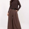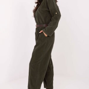Wygodne i stylowe spodnie damskie sztruksowe o luźnym kroju, idealne na co dzień. Wykonane z miękkiego poliestru, zapewniają komfort noszenia i swobodę ruchów. Model posiada wysoki stan z wszytą gumą w pasie, dzięki czemu świetnie dopasowuje się do sylwetki i podkreśla talię. Spodnie mają boczne kieszenie wsuwane oraz otwarte kieszenie z tyłu, co dodaje im praktyczności. Całość uzupełnia pasek zapinany w talii, stanowiący modny i funkcjonalny akcent. Gładki materiał i szerokie nogawki nadają im lekkości i nonszalancji, doskonałe do stylizacji casualowych i codziennych, zarówno z elegancką koszulą, jak i luźnym T-shirtem.