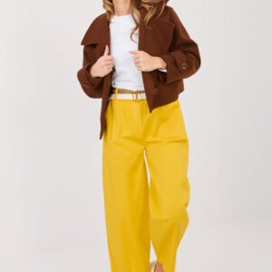 Wygodne i stylowe spodnie w kroju carrot, idealne do codziennych, casualowych stylizacji. Wykonane z wysokiej jakości bawełny z dodatkiem elastanu, co zapewnia komfort i lekkość noszenia oraz subtelną elastyczność. Spodnie mają wysoki stan, a nogawki są zwężane i sięgają długości 7/8, co nadaje nowoczesnego charakteru. W pasie znajduje się wszyta guma, a dodatkowo spodnie wyposażone są w pasek z możliwością zapięcia, co umożliwia idealne dopasowanie. Praktyczne kieszenie boczne wsuwane zwiększają funkcjonalność, a gładki wzór sprawia, że łatwo łączyć je z różnymi elementami garderoby. Te spodnie to doskonały wybór dla osób ceniących komfort, swobodę ruchów i nowoczesny casualowy look.