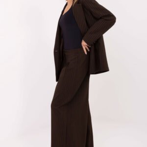 Stylowe damskie spodnie materiałowe typu palazzo to doskonały wybór na co dzień, do pracy oraz na wizytowe okazje, kiedy liczy się szyk i nowoczesna forma. Ich subtelny wzór w paski optycznie wysmukla sylwetkę, a zarazem nadaje spodniom elegancki, klasyczny charakter. Model wykonano z wysokiej jakości mieszanki nylonu, wiskozy, elastanu i poliestru, dzięki czemu spodnie są lekkie, przewiewne, elastyczne i komfortowe w noszeniu. Wysoki stan pięknie podkreśla talię, a szerokie nogawki typu palazzo nadają całości swobodnej, a zarazem bardzo eleganckiej linii. W górnej części przodu znajdują się ozdobne zakładki, które dodają spodniom wyjątkowego charakteru oraz subtelnie podkreślają elegancki styl. Praktyczne zapięcie na zamek i guzik zapewnia wygodę i stabilne dopasowanie. To spodnie, które łączą ponadczasowy styl z nowoczesnym krojem, idealne dla kobiet ceniących elegancję, wygodę i wyrafinowane detale.
