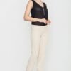 Model o prostych, długich nogawkach. Na dole posiadają ozdobny detal w postaci wiązanej kokardki. Ich niebanalny krój z powodzeniem dopełni oficjalnego wizerunku oraz nada szyku wieczorowym zestawom.