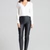 Eleganckie spodnie o luźnym fasonie, wykończone efektownymi marszczeniami. Model świetnie podkreśla talię.