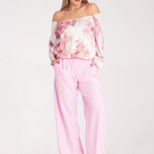 Eleganckie spodnie z wysokim stanem. Luźnym, prosty krój. Elastyczną gumkę z tyłu. Spodnie z praktycznymi kieszeniami i szlufkami na pasek.