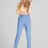 Proste spodnie damskie o dopasowanym kroju. Spodnie zapinane na boczny zamek. U dołu nogawki z rozcięciami.