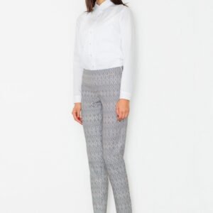 Eleganckie spodnie z wysokim stanem z kolorowymi i ciekawymi nadrukami. Spodnie zapinane na zamek z boku. Spodnie nie posiadają kieszeni.