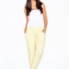 Spodnie damskie z ozdobnym marszczeniem w pasie i szarfą do wiązania. Po bokach kieszenie wsuwane. Spodnie zapinane na zamek.