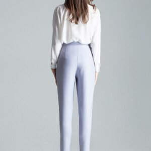 Szare klasyczne spodnie z zakładkami w pasie, skośne kieszenie z boku.Spodnie zapinane na zamek z lewej strony. Nogawki lekko zwężane do dołu.