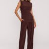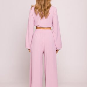 Stylowe i wygodne spodnie uszyte z lekkiej tkaniny o wyraźnej strukturze krepa z matowym wykończeniem. Model o luźnym fasonie i szerokich, długich nogawkach zapewnia swobodę ruchów i nowoczesny wygląd, idealny zarówno na co dzień, jak i do bardziej eleganckich stylizacji. Wysoki, elastyczny pas sprawia, że spodnie świetnie dopasowują się do sylwetki i są łatwe do założenia bez zamka, bez guzików. Brak kieszeni podkreśla prostotę i lekkość formy. Zaprojektowano i uszyto w Polsce, z myślą o komforcie i ponadczasowym stylu.