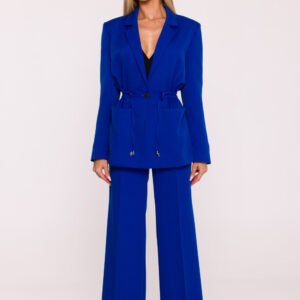 Klasyczne spodnie damskie uszyte z gładkiej tkaniny garniturowej o matowym wykończeniu to elegancka i ponadczasowa propozycja do wielu stylizacji. Materiał zachowuje strukturę, a zaprasowane na kant nogawki dodają całości wyrafinowanego charakteru. Model o średnim stanie dopasowuje się w talii i biodrach, a szeroka nogawka od uda w dół zapewnia komfort noszenia i swobodę ruchu. Zapięcie na guzik i kryty zamek z przodu gwarantuje wygodę, a boczne kieszenie dodają funkcjonalności. Spodnie sięgają do ziemi, co w połączeniu z szeroką nogawką optycznie wydłuża sylwetkę i podkreśla elegancki charakter całej stylizacji. Brak podszewki sprawia, że model pozostaje lekki i komfortowy w noszeniu. Zaprojektowane i uszyte w Polsce, dla kobiet, które cenią klasykę, wygodę i doskonałe wykonanie.