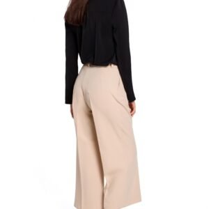 Luźne jednokolorowe spodnie typu cullottes podkreślą każdą stylizację, zarówno tą mniej i bardziej elegancką. Z powodzeniem zastąpią elegancką spódnicę, mogą też być zamiennikiem klasycznych jeansów noszonych na co dzień. Spodnie zapinane na zamek i guziki.