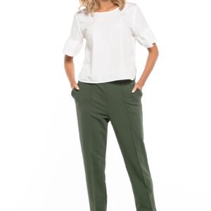 Eleganckie spodnie z kantem i kieszeniami z dzianiny bawełnianej. Idealne na wiele okazji.