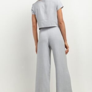 Szukasz idealnych spodni do letnich stylizacji? Oto świetna propozycja, eleganckie spodnie z lnem T406. Długość 7/8 sprawia, że będą one doskonałym wyborem na ciepłe dni. Wykonane z przewiewnych tkanin zapewniają komfort noszenia nawet podczas upalnej pogody. Te spodnie to połączenie formalnego designu ze swobodnym krojem. Ich szerokie nogawki dodają lekkości każdej stylizacji. Dodatkowo zaszewki z przodu i z tyłu oraz wszyty z boku zamek kryty pozwalają prezentować się im bardzo elegancko. Idealne zarówno do biura, jak i na spotkania w plenerze – gwarantują pełen komfort i swobodę ruchów. Zestawienie 70% wiskozy i 30% lnu sprawia, że te spodnie są nie tylko stylowe, ale także przyjazne dla skóry. Naturalne włókna pozwalają skórze oddychać, co jest szczególnie istotne podczas letnich dni. Dodatkowo materiały te są trwałe i łatwe w pielęgnacji. Spodnie z lnem T406 to propozycja dla osób ceniących sobie wysoką jakość wykonania oraz modny design. Dzięki nim stworzysz unikatowe zestawy ubrań, które podkreślą Twój indywidualny styl. Postaw na elegancję i wygodę, wybierz te przewiewne spodnie na lato!