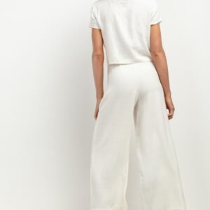 Szukasz idealnych spodni do letnich stylizacji? Oto świetna propozycja, eleganckie spodnie z lnem T406. Długość 7/8 sprawia, że będą one doskonałym wyborem na ciepłe dni. Wykonane z przewiewnych tkanin zapewniają komfort noszenia nawet podczas upalnej pogody. Te spodnie to połączenie formalnego designu ze swobodnym krojem. Ich szerokie nogawki dodają lekkości każdej stylizacji. Dodatkowo zaszewki z przodu i z tyłu oraz wszyty z boku zamek kryty pozwalają prezentować się im bardzo elegancko. Idealne zarówno do biura, jak i na spotkania w plenerze – gwarantują pełen komfort i swobodę ruchów. Zestawienie 70% wiskozy i 30% lnu sprawia, że te spodnie są nie tylko stylowe, ale także przyjazne dla skóry. Naturalne włókna pozwalają skórze oddychać, co jest szczególnie istotne podczas letnich dni. Dodatkowo materiały te są trwałe i łatwe w pielęgnacji. Spodnie z lnem T406 to propozycja dla osób ceniących sobie wysoką jakość wykonania oraz modny design. Dzięki nim stworzysz unikatowe zestawy ubrań, które podkreślą Twój indywidualny styl. Postaw na elegancję i wygodę, wybierz te przewiewne spodnie na lato!