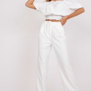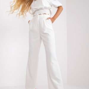 Materiałowe spodnie damskie z szeroką nogawką. Spodnie zapinane na zamek i haftkę, po bokach kieszenie wsuwane. Idealne do wielu stylizacji.