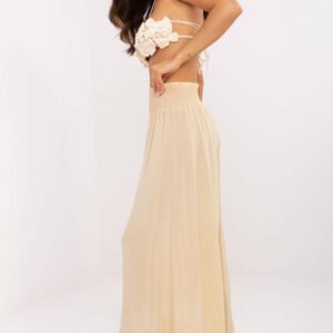 Damskie spodnie materiałowe typu szwedy, idealne na co dzień w casualowym stylu. Wykonane z lekkiej i przewiewnej wiskozy, zapewniają wygodę i swobodę ruchów. Szerokie nogawki nadają im elegancki, a jednocześnie luźny charakter. Wysoki stan pięknie podkreśla talię, a ozdobne marszczenia dodają subtelnego uroku i stylowego wykończenia. Gładki materiał sprawia, że spodnie są uniwersalne i łatwe do zestawienia z różnymi elementami garderoby. Idealny wybór dla kobiet ceniących wygodę i modny wygląd.