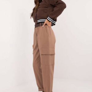 Damskie spodnie cargo o casualowym charakterze, idealne zarówno na co dzień, jak i do pracy. Wykonane z mieszanki bawełny, poliamidu i elastanu, zapewniają komfort noszenia oraz swobodę ruchów. Gładki wzór dominuje, nadając spodniom uniwersalny, stylowy wygląd. Wysoki stan oraz zwężane nogawki podkreślają sylwetkę, dodając całości eleganckiego charakteru. Spodnie są wyposażone w praktyczny, zapinany pasek, który pozwala na idealne dopasowanie do talii. Boczne, wsuwane kieszenie podkreślają ich funkcjonalność i styl cargo, czyniąc je świetnym wyborem na każdą okazję.