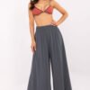Wiskozowe spodnie z wysokim stanem, gumka w pasie. Spodnie z szerokimi nogawkami, ozdobny pasek do wiązania.