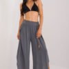 Wiskozowe spodnie z wysokim stanem, gumka w pasie. Spodnie z szerokimi nogawkami, ozdobny pasek do wiązania.