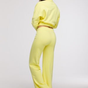 Stylowe i wygodne spodnie dresowe typu wide leg to idealna propozycja dla kobiet ceniących komfort i modny wygląd. Wykonane z jednobarwnej tkaniny, bez dodatkowej podszewki, sprawdzą się zarówno w casualowych, jak i nieco bardziej eleganckich stylizacjach w duchu smart casual. Szerokie, długie nogawki z przeszyciem z przodu nadają sylwetce lekkości i wydłużają optycznie nogi. Spodnie mają klasyczny, normalny stan i wygodne zapięcie na gumę w pasie, co zapewnia swobodę ruchów i łatwość dopasowania. Brak kieszeni podkreśla minimalistyczny charakter modelu. Krój został zaprojektowany tak, by pasować do różnych typów sylwetki, szczególnie dobrze sprawdzi się przy figurze typu gruszka, pomagając wyrównać proporcje ciała. Zaprojektowano i uszyto w Polsce.