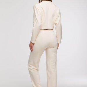 Stylowe i wygodne spodnie dresowe typu wide leg to idealna propozycja dla kobiet ceniących komfort i modny wygląd. Wykonane z jednobarwnej tkaniny, bez dodatkowej podszewki, sprawdzą się zarówno w casualowych, jak i nieco bardziej eleganckich stylizacjach w duchu smart casual. Szerokie, długie nogawki z przeszyciem z przodu nadają sylwetce lekkości i wydłużają optycznie nogi. Spodnie mają klasyczny, normalny stan i wygodne zapięcie na gumę w pasie, co zapewnia swobodę ruchów i łatwość dopasowania. Brak kieszeni podkreśla minimalistyczny charakter modelu. Krój został zaprojektowany tak, by pasować do różnych typów sylwetki, szczególnie dobrze sprawdzi się przy figurze typu gruszka, pomagając wyrównać proporcje ciała. Zaprojektowano i uszyto w Polsce.