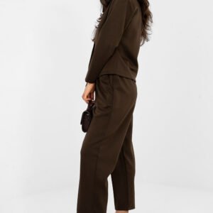 Nowoczesne spodnie dresowe o eleganckim charakterze, które doskonale sprawdzą się zarówno na co dzień, do pracy, jak i na wizytowe okazje. To idealne połączenie wygody i szyku w nowoczesnym stylu. Wykonane z wysokiej jakości wiskozy z dodatkiem elastanu, zapewniają komfort noszenia, miękkość oraz swobodę ruchów. Gładki wzór i dopracowany krój nadają im eleganckiego wyglądu. Model z wysokim stanem oraz zwężanymi nogawkami, które zostały przeszyte w kant, optycznie wydłużają nogi i podkreślają sylwetkę. Brak klasycznego zapięcia zwiększa wygodę użytkowania, a wsuwane kieszenie dodają funkcjonalności. Dodatkowym atutem jest pasek z możliwością zapięcia, który podkreśla talię i nadaje spodniom bardziej eleganckiego charakteru. To idealny wybór dla kobiet, które cenią wygodę dresów połączoną z eleganckim stylem.