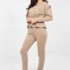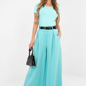 Eleganckie spodnie dresowe typu palazzo to połączenie wygody i szyku w nowoczesnym wydaniu. Uszyte z wysokiej jakości mieszanki wiskozy, poliestru i elastanu, zachwycają tkaniną typu masełko niezwykle miękką, delikatną i wyjątkowo przyjemną w dotyku. Materiał pięknie układa się na sylwetce, zapewniając komfort przez cały dzień. Model z wysokim stanem posiada w pasie wszytą gumę, która gwarantuje idealne dopasowanie bez uczucia ucisku. Dodatkowo dołączony pasek z zapięciem podkreśla talię i nadaje całości eleganckiego charakteru. Brak klasycznego zapięcia zwiększa wygodę użytkowania. Szerokie nogawki w stylu palazzo nadają sylwetce lekkości i swobody, a ozdobne kontrafałdy na przodzie dodają spodniom wyrafinowanego akcentu. Gładki wzór sprawia, że model jest uniwersalny i łatwy do stylizowania, doskonale sprawdzi się zarówno na co dzień, jak i do pracy. Boczne, wsuwane kieszenie podnoszą funkcjonalność, łącząc praktyczność z eleganckim stylem.