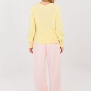 Eleganckie spodnie dresowe typu joggery to połączenie wygody i stylowego wykończenia. Model o długich nogawkach zakończonych ściągaczami doskonale układa się na sylwetce, nadając całości nowoczesnego charakteru. Gładki wzór podkreśla ich uniwersalność i sprawia, że świetnie sprawdzą się zarówno w codziennych, jak i bardziej dopracowanych stylizacjach. W pasie wszyta elastyczna guma zapewnia komfortowe dopasowanie oraz wygodę noszenia przez cały dzień. Boczne kieszenie wsuwane dodają funkcjonalności, a subtelna broszka w kształcie kwiatka stanowi elegancki, kobiecy akcent. Spodnie wykonane są z wyjątkowo przyjemnego w dotyku materiału typu masełko miękkiej i delikatnej mieszanki poliestru, wiskozy i elastanu. Tkanina pięknie układa się na ciele, zapewnia swobodę ruchów i wysoki komfort użytkowania. To idealna propozycja dla kobiet ceniących wygodę w eleganckim wydaniu.