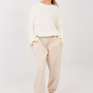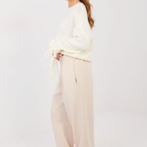 Casualowe spodnie dresowe typu joggery to połączenie wygody i stylowego wyglądu, idealne na co dzień oraz do pracy w luźniejszym stylu. Wykonane z miękkiej i elastycznej mieszanki wiskozy z dodatkiem elastanu, zapewniają komfort noszenia oraz swobodę ruchów. Model o gładkim wzorze, z ozdobnymi zakładkami na przodzie, które nadają spodniom eleganckiego charakteru. Z tyłu wszyta elastyczna guma gwarantuje dobre dopasowanie do sylwetki. Nogawki zakończone ściągaczami podkreślają fason joggerów i zapewniają wygodę użytkowania. Spodnie nie posiadają zapięcia, a boczne kieszenie wsuwane zwiększają ich funkcjonalność. Całość uzupełnia ozdobny guzik, stanowiący stylowy detal. Idealne do codziennych stylizacji z bluzą, swetrem lub koszulą.