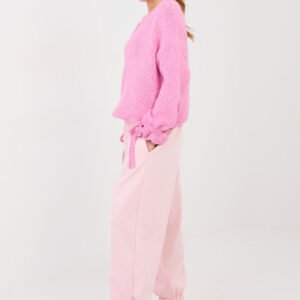 Casualowe spodnie dresowe typu joggery to połączenie wygody i stylowego wyglądu, idealne na co dzień oraz do pracy w luźniejszym stylu. Wykonane z miękkiej i elastycznej mieszanki wiskozy z dodatkiem elastanu, zapewniają komfort noszenia oraz swobodę ruchów. Model o gładkim wzorze, z ozdobnymi zakładkami na przodzie, które nadają spodniom eleganckiego charakteru. Z tyłu wszyta elastyczna guma gwarantuje dobre dopasowanie do sylwetki. Nogawki zakończone ściągaczami podkreślają fason joggerów i zapewniają wygodę użytkowania. Spodnie nie posiadają zapięcia, a boczne kieszenie wsuwane zwiększają ich funkcjonalność. Całość uzupełnia ozdobny guzik, stanowiący stylowy detal. Idealne do codziennych stylizacji z bluzą, swetrem lub koszulą.