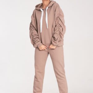 Bawełniane dresowe spodnie. W pasie wszyta szeroka guma. Nogawki wykończone gumą. Spodnie nie posiadają kieszeni.