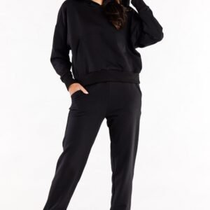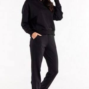 Proste spodnie dresowe z kieszonkami wsuwanymi oraz wszytą gumą w pasie. Nogawki zakończone ściągaczami.