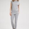 Welurowe spodnie dresowe, bez kieszeni, w pasie i u dołu wszyta szeroka guma.