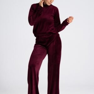 Spodnie damskie typu dzwony. Uszyte z weluru z wysokim stanem, który optycznie wysmukla talię.