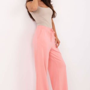 Spodnie dresowe w stylu casual, idealne na co dzień. Uszyte z miękkiej mieszanki wiskozy, poliestru i elastanu, zapewniają wygodę, przewiewność oraz lekką elastyczność materiału. Gładka faktura tkaniny nadaje im uniwersalnego charakteru, dzięki czemu łatwo dopasują się do wielu stylizacji. Model wyróżnia się wysokim stanem i szerokimi nogawkami, które pięknie układają się w ruchu, podkreślając swobodny fason. W pasie zastosowano praktyczne wiązanie, umożliwiające dopasowanie do sylwetki, a boczne wsuwane kieszenie dodają funkcjonalności. Nowoczesne i komfortowe, świetny wybór na codzienne, casualowe zestawy.
