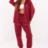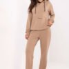 Stylowe spodnie dresowe typu palazzo, łączące wygodę i elegancję w codziennych stylizacjach. Wykonane z miękkiej mieszanki wiskozy, poliestru i elastanu, zapewniają komfort noszenia oraz swobodę ruchów. Gładki materiał i szerokie nogawki nadają im modny, lekko oversize?owy charakter. Wysoki pas z elastyczną gumą gwarantuje idealne dopasowanie do sylwetki, a ozdobne zakładki na przodzie dodają im wyjątkowego wyrazu. Model bez zapięcia, wyposażony w praktyczne boczne kieszenie. Doskonałe na co dzień, zarówno do sportowych, jak i bardziej eleganckich zestawień.