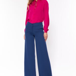 Kobaltowe spodnie typu palazzo to doskonały element stylizacji soft-office, wychodzącej poza kanon. Nieoczywisty kolor przełamie klasyczną stylizację biurową, a przyjemny w dotyku materiał, z domieszką elastanu, zapewni wysoki komfort noszenia.