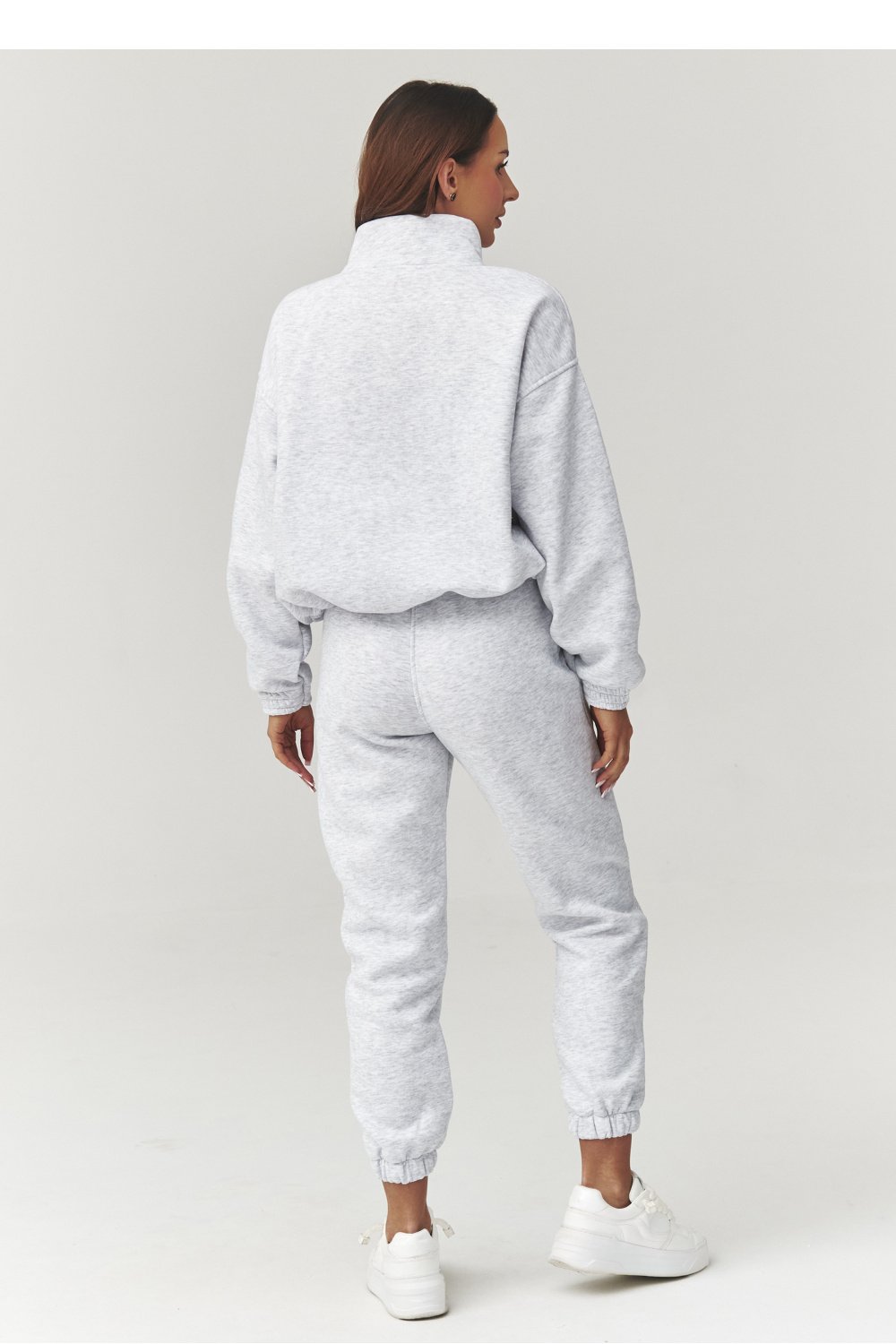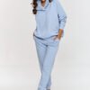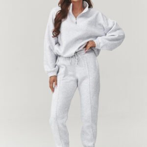 Stylowy komplet dresowy damski w rozmiarze uniwersalnym to idealne połączenie komfortu i modnego wyglądu. Wykonany z miękkiej, przyjemnej w dotyku dzianiny, doskonale sprawdzi się zarówno na co dzień, jak i podczas weekendowego relaksu czy podróży. Klasyczne kolory dodają całości uniwersalnego charakteru i łatwo dopasowują się do różnych stylizacji. Dodatkowym atutem kompletu są ozdobne przeszycia biegnące wzdłuż nogawek, które optycznie wydłużają nogi. Bluza o luźnym kroju z krótkim zamkiem pod szyją, na dole z regulacją na troczki zapewnia wygodę noszenia oraz modny, sportowo-casualowy look. Spodnie dresowe z elastyczną talią, posiadają zwężane nogawki zakończone ściągaczami podkreślają nowoczesny.