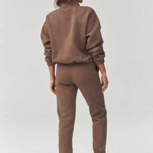 Stylowy komplet dresowy damski w rozmiarze uniwersalnym to idealne połączenie komfortu i modnego wyglądu. Wykonany z miękkiej, przyjemnej w dotyku dzianiny, doskonale sprawdzi się zarówno na co dzień, jak i podczas weekendowego relaksu czy podróży. Klasyczne kolory dodają całości uniwersalnego charakteru i łatwo dopasowują się do różnych stylizacji. Dodatkowym atutem kompletu są ozdobne przeszycia biegnące wzdłuż nogawek, które optycznie wydłużają nogi. Bluza o luźnym kroju z krótkim zamkiem pod szyją, na dole z regulacją na troczki zapewnia wygodę noszenia oraz modny, sportowo-casualowy look. Spodnie dresowe z elastyczną talią, posiadają zwężane nogawki zakończone ściągaczami podkreślają nowoczesny.