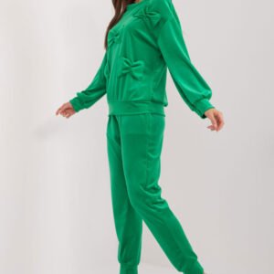 Zanurz się w komfortowym luksusie z naszym wyjątkowym kompletem welurowym, składającym się z eleganckiej bluzy i spodni. Ten zestaw nie tylko zachwyca swoim przytulnym welurowym materiałem, ale także dodaje stylowego akcentu w postaci ozdobnych kokardek umieszczonych na przodzie bluzy. Styl casual tego kompletu sprawia, że jest idealny na relaksacyjne dni, jednocześnie oferując wyjątkowy wyraz elegancji. Gładki wzór dominujący nadaje zestawowi uniwersalności, dzięki czemu z łatwością dopasuje się do różnych okazji i stylizacji. Materiał dominujący, czyli wysokiej jakości poliester, gwarantuje nie tylko miękkość, ale także trwałość weluru, który jest jednocześnie przyjemny dla skóry. Standardowa długość bluzy i spodni sprawia, że kompletem można cieszyć się zarówno w domowym zaciszu, jak i podczas swobodnych spacerów czy spotkań z przyjaciółmi. Spodnie wyposażone w ściągacze przy nogawkach oraz wysoki stan w pasie dodają nie tylko wygody, ale również nowoczesnego charakteru. Boczne kieszenie wsuwane w spodniach sprawiają, że są one zarówno praktyczne, jak i stylowe. Długi rękaw bluzy oraz dekolt okrągły dodają kompletowi subtelnego wyrazu. Komplet welurowy to nie tylko symbol komfortu, ale także elegancji w codziennym stylu. Dzięki ozdobnym kokardkom, ten zestaw staje się niebanalną propozycją dla osób, które pragną połączyć wygodę z modowym wyrafinowaniem.