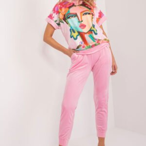 Ten welurowy komplet to idealna propozycja dla tych, którzy cenią sobie wygodę i styl na co dzień. Składa się z bluzki i spodni, które tworzą zgrany duet casualowego looku. Bluzka, wykonana z miękkiego poliestru, posiada nadruk, który nadaje jej indywidualnego charakteru. Jej krótki rękaw dodaje lekkości i swobody, idealny na ciepłe dni. Spodnie, utrzymane w jednolitym kolorze, są długie i wygodne. Ich wysoki pas ze ściągaczami sprawia, że dopasowują się do sylwetki, zapewniając komfort noszenia przez cały dzień. Dodatkowo, kieszenie boczne wsuwane są praktycznym elementem, pozwalającym na bezpieczne przechowywanie drobnych przedmiotów. Styl nogawek ze ściągaczami nadaje spodniom swobodnego charakteru, jednocześnie dodając im nuty sportowego looku. Dzięki swojemu casualowemu stylowi, ten welurowy komplet stanie się nieodłącznym elementem Twojej codziennej garderoby, dodając Ci wygody i stylu w każdej sytuacji.