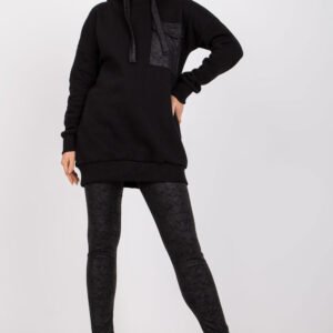 Komplet dresowy składający się z bluzy oraz legginsów. Bluza z długim rękawem oraz kapturem, legginsy z szeroką gumą w pasie.
