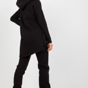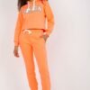 Komplet damski składający się z bluzy oraz spodni. Bluza o przedłużonym kroju z długim rękawem oraz kapturem. Długie spodnie z wiązaniem w pasie oraz kieszeniami.