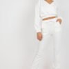 Komplet dresowy składający się z bluzy i spodni. Bluza z długim rękawem oraz kapturem. Długie spodnie z wiązaniem w pasie oraz kieszeniami wsuwanymi.
